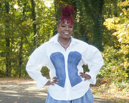 WHITE DENIM PATCHWORK SHIRTS TOP