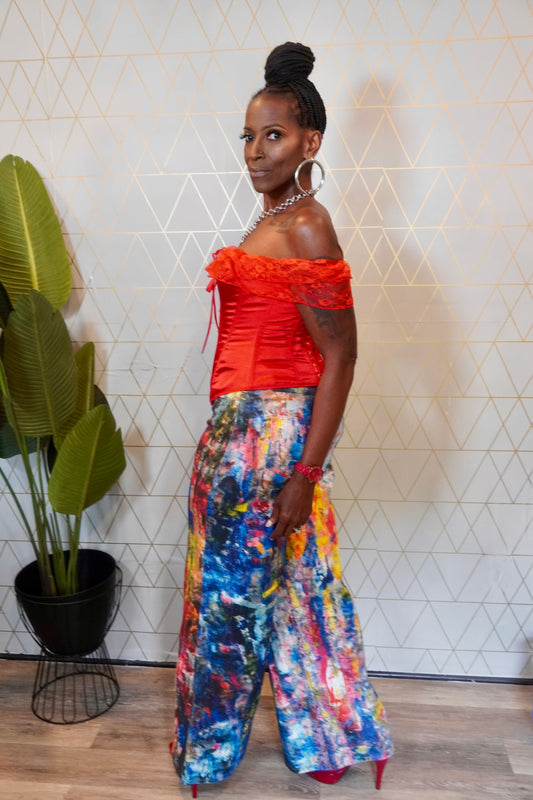PLUS SIZE GRAPHIC FRONT LACE UP SIDE CROP TOP