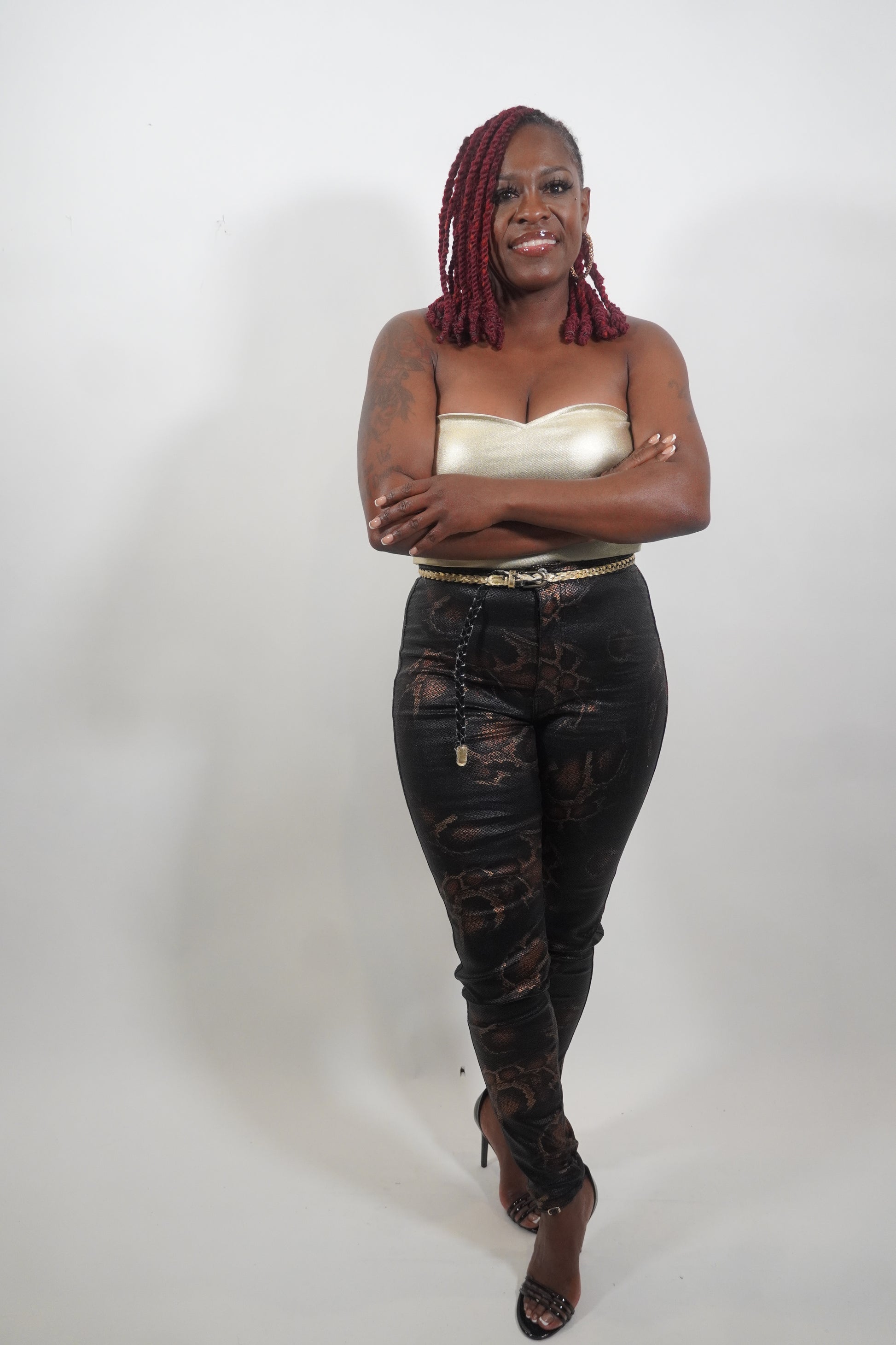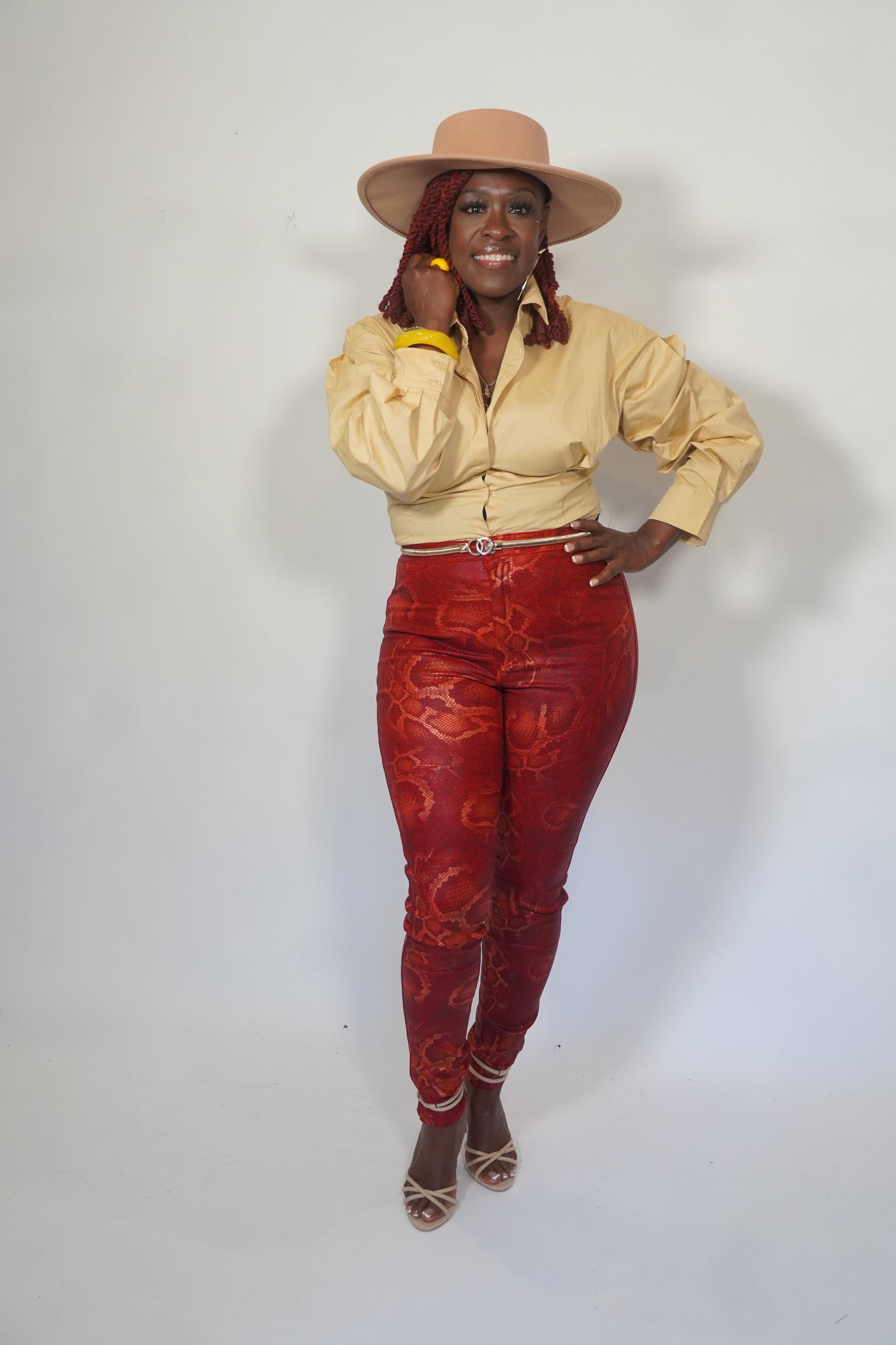 Command attention with the Python Stretch Pants—designed to hug your silhouette and move with you. Featuring a striking python print, these pants elevate your wardrobe with fearless style and unmatched comfort for every bold step you take.Models are wearing a small and large