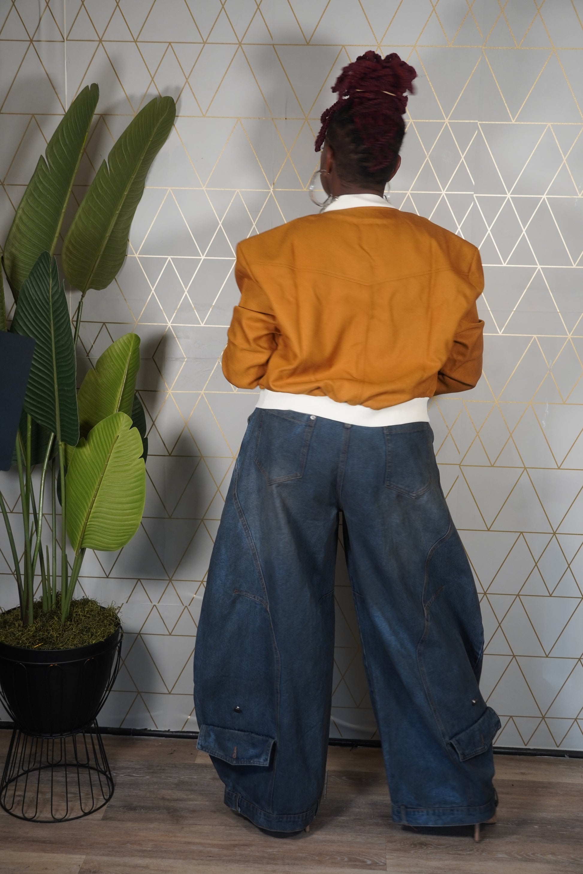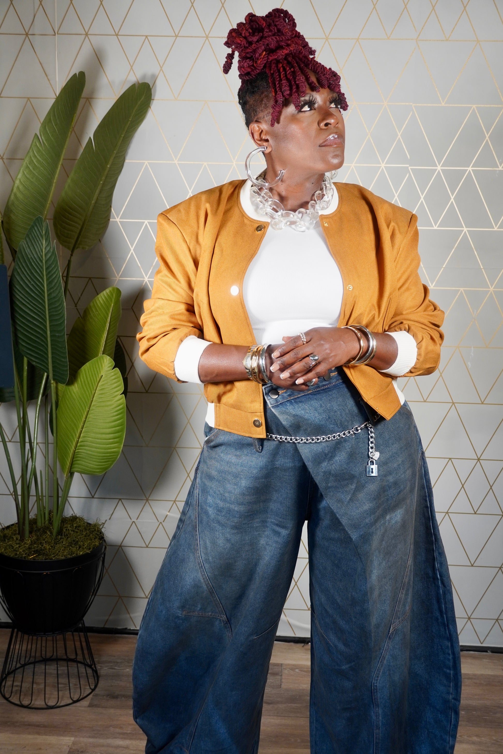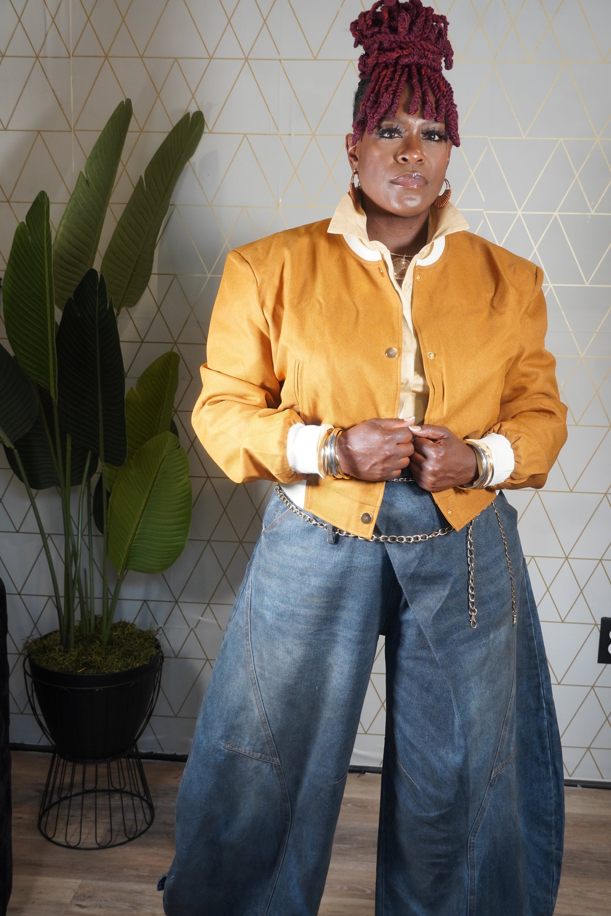 Make your move in the Power Play Bomber — a bold, structured jacket designed to command attention. With luxe details and a rich amber hue, this statement piece takes you from day to night, effortlessly elevating your style.