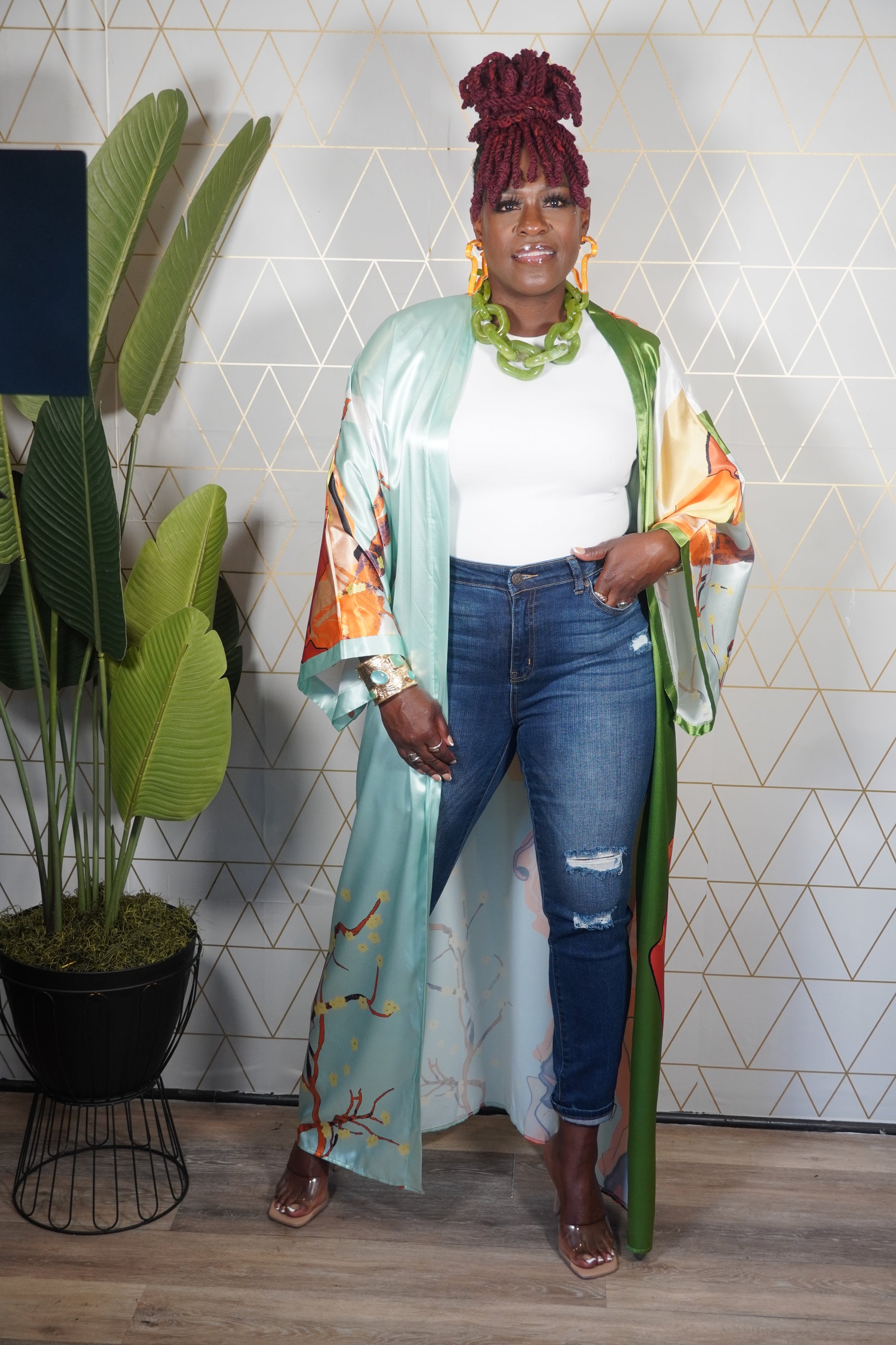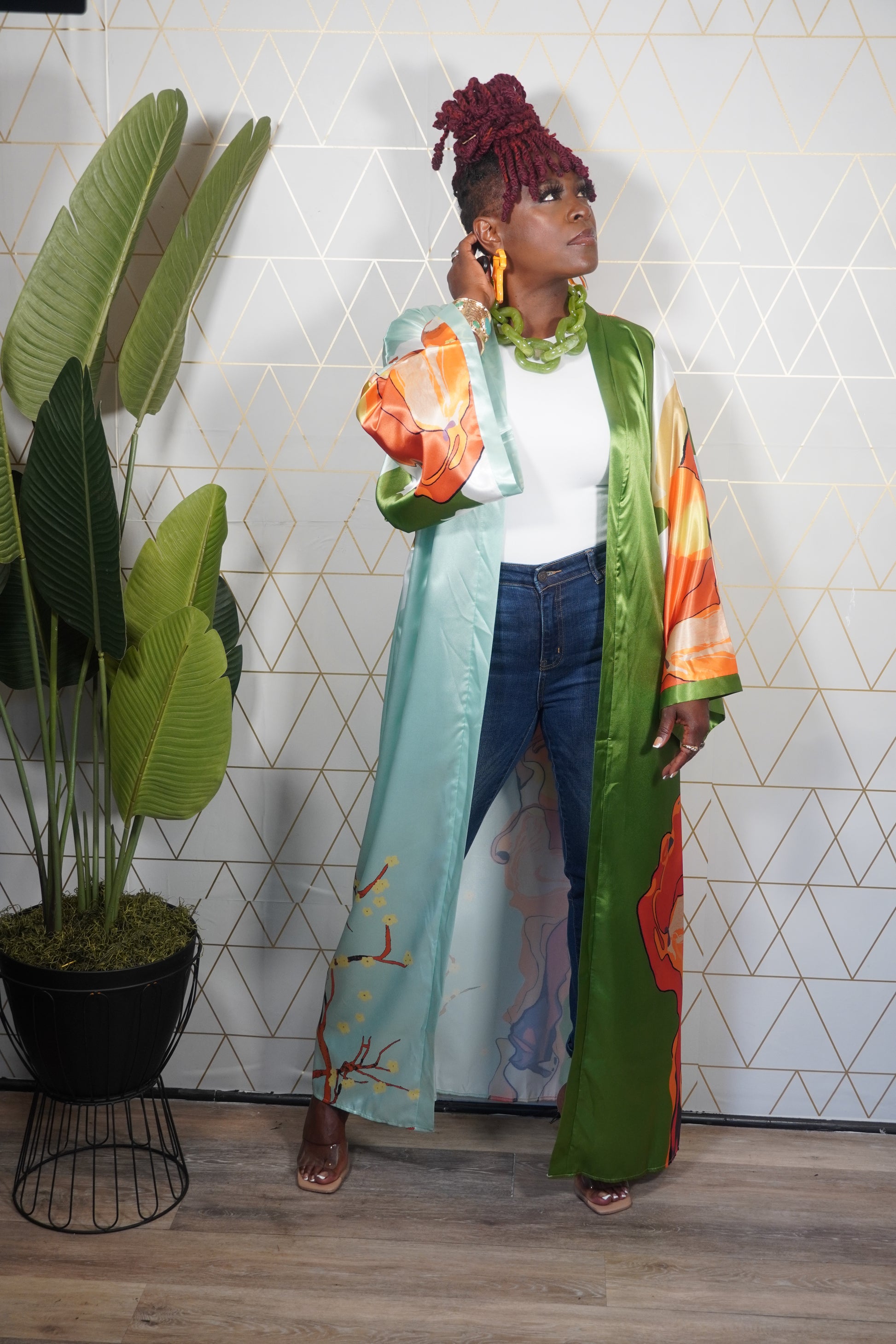 From early mornings at the coffee shop to late nights out, The Vision Duster is your go-to layer for looking effortlessly bold and chic. Flowy, versatile, and statement-making — it’s the piece that turns everyday moments into runway moments.